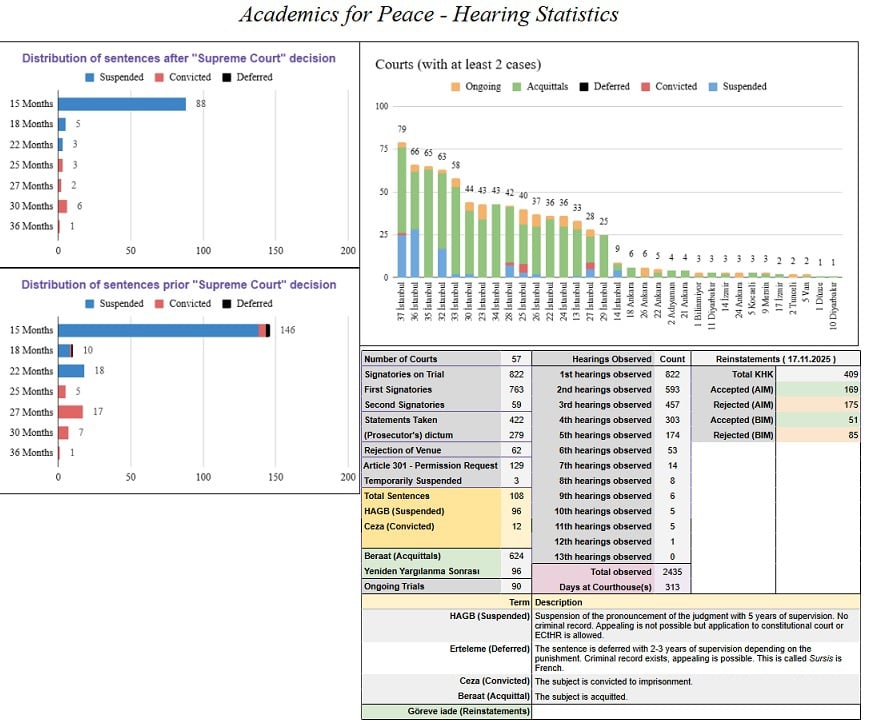 15 Temmuz 2016 darbe girişiminin ardından ilan edilen Olağanüstü Hâl (OHAL) kapsamında çıkarılan KHK’lerle, barış bildirisine imza atan 406 akademisyen, “örgüt propagandası” suçlamasıyla kamu görevlerinden ihraç edildi. (TY)