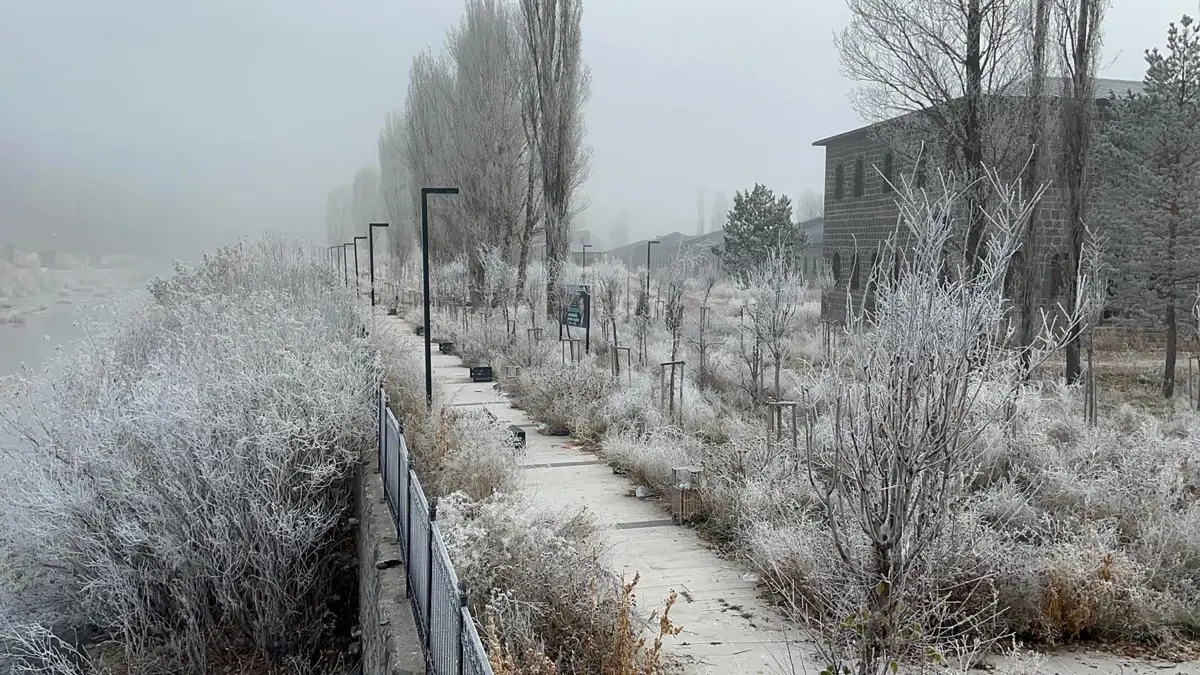 Ardahan'da hava sıcaklığı eksi 7,9 dereceye kadar düştü, şehir merkezi yoğun sisle kaplandı ve sokaklar dondurucu soğukla mücadele etmeye başladı.